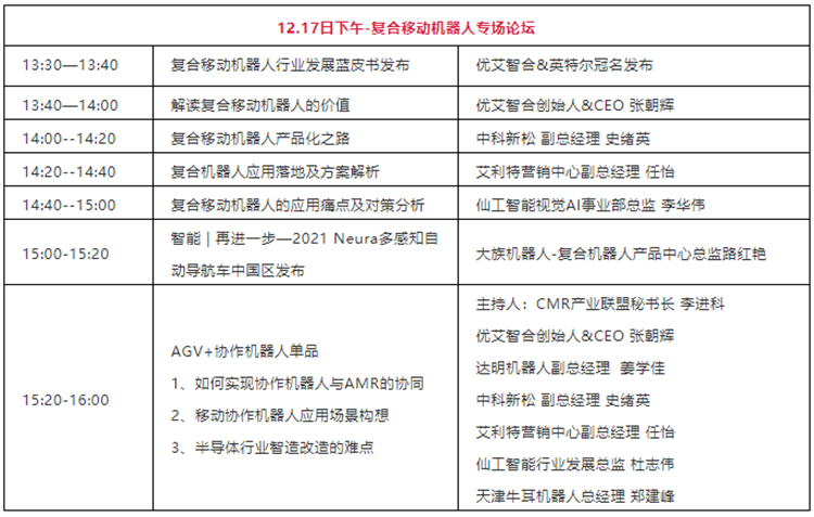 2021年復合移動機器人進入發展元年,但目前在技術應用,市場推廣、產品標方面存在若干問題,為了進一步推動技術發展以及市場應用,12.17日,在“2021 中國移動機器人(AGV/AMR)行業發展年會”期間,中國移動機器人(AGV/AMR)產業聯盟特別組織了復合移動機器人專場論壇,論壇上,將發布業內首份《復合移動機器人行業發展藍皮書(2021版)》。同時,復合移動機器人產業鏈上下游企業也將齊聚一堂,共同研討復合移動機器人的新方向、新機遇。