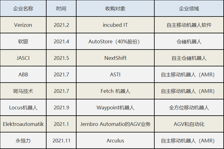 在整個(gè)移動(dòng)機(jī)器人行業(yè)向好的同時(shí),國(guó)外市場(chǎng)也同樣熱火朝天。據(jù)新戰(zhàn)略移動(dòng)機(jī)器人全媒體不完全統(tǒng)計(jì),為了更好地布局移動(dòng)機(jī)器人市場(chǎng),國(guó)外移動(dòng)機(jī)器人行業(yè)今年掀起一陣“收購(gòu)”浪潮,其中不乏知名企業(yè),如ABB、斑馬技術(shù)和永恒力等等。